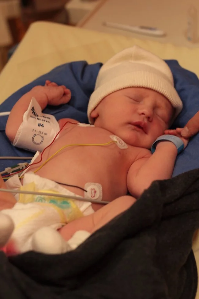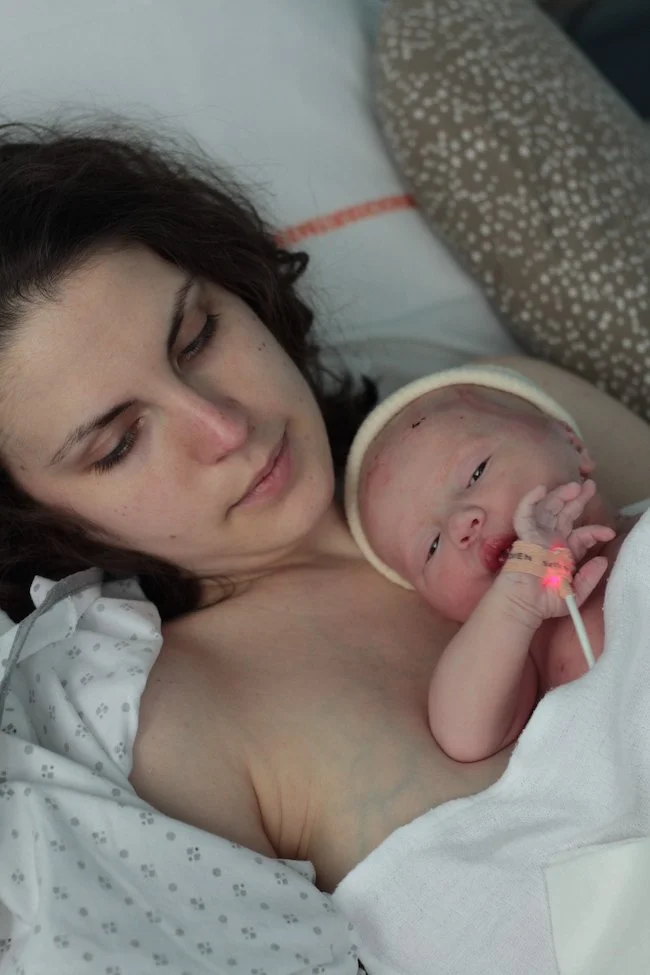 I progressed quite quickly, we arrived at 3am, I was 4cm and 3 hours later I was at 7cm. That’s when they told me I would get the epidural, and after that I remember not feeling anything anymore (but I had managed my sensations so well up to that point, just breathing, I remember discomfort, but not really pain). They got me laid down (I was on a birth ball up until now), and the midwife came to help me in different positions from time to time. But everything slowed down, just like I knew it would. I was still progressing though and they manually broke my waters and at around noon, it was time to start pushing. I couldn’t feel my contractions at this point so my partner was looking at the monitor and he saw the surges so HE told me when to push, with the help of the midwives. I pushed for 20 minutes and they performed an episiotomy (my biggest fear!) then used forceps and my baby boy was born. With multiple loops of the umbilical cord around his neck that they had to cut immediately. I grabbed him myself from between my legs and that tiny moment felt so empowering compared to everything else. I had him on my chest for a second but he was blue so they got him out of the room and went back immediately and I spent two hours with him on my chest while I was being stitched up. I still had the epidural but the episiotomy stitch up was the WORST pain of everything from that birth.